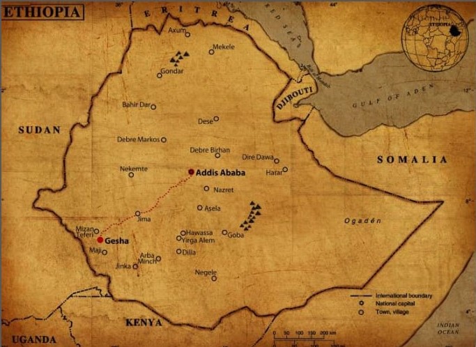 そんなアラビカ種はエチオピア(アビシニア)高原の西南部、標高1300m〜2000mに位置する、現在の行政区分では南部諸民族州とオロミア州の一部、19世紀にカファ王国という国があった地域が原産地と考えられています。