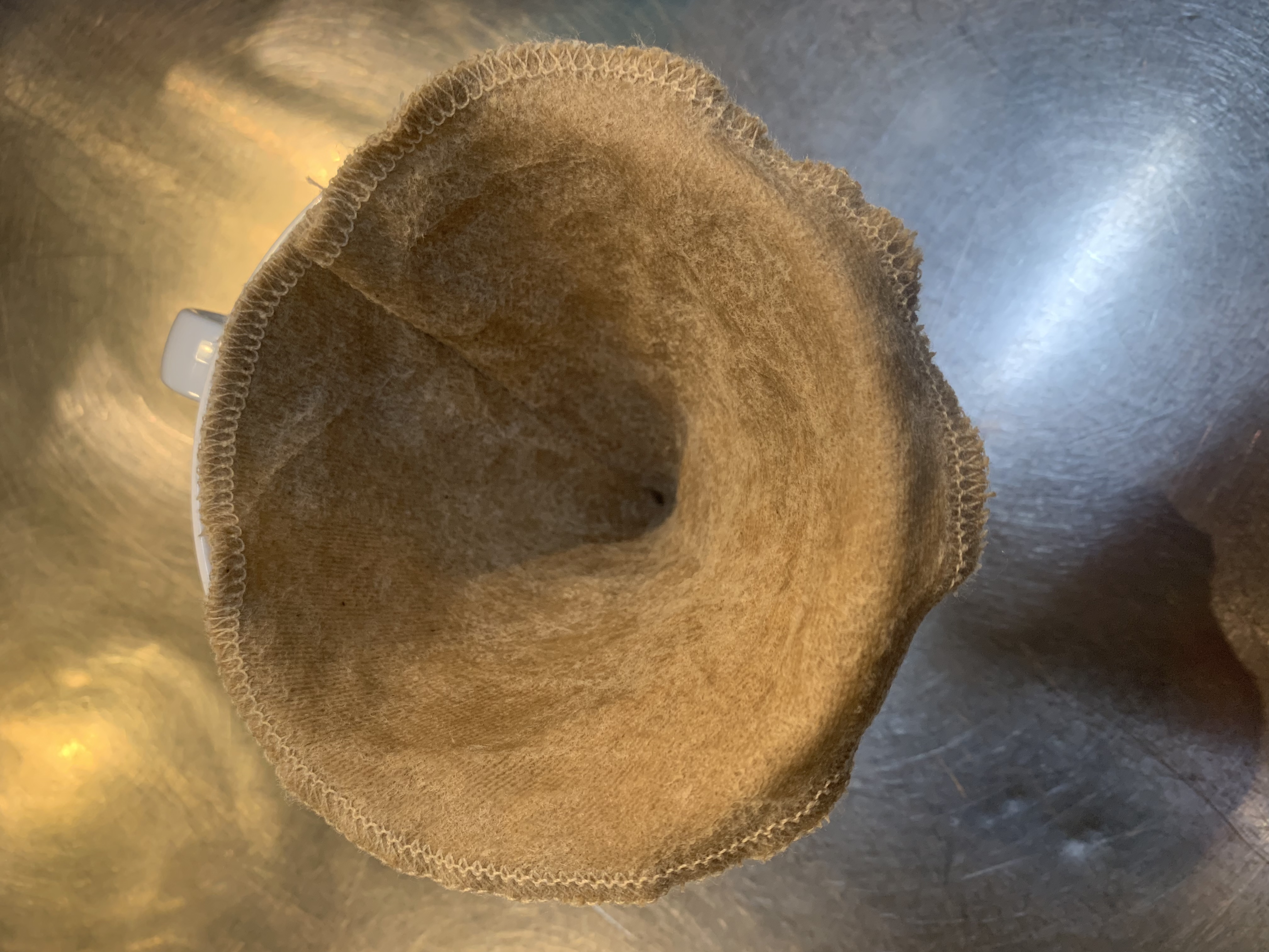 これは円錐形のドリッパーにはめて使用するタイプのネルフィルターで、半月ほど使用していたものです。