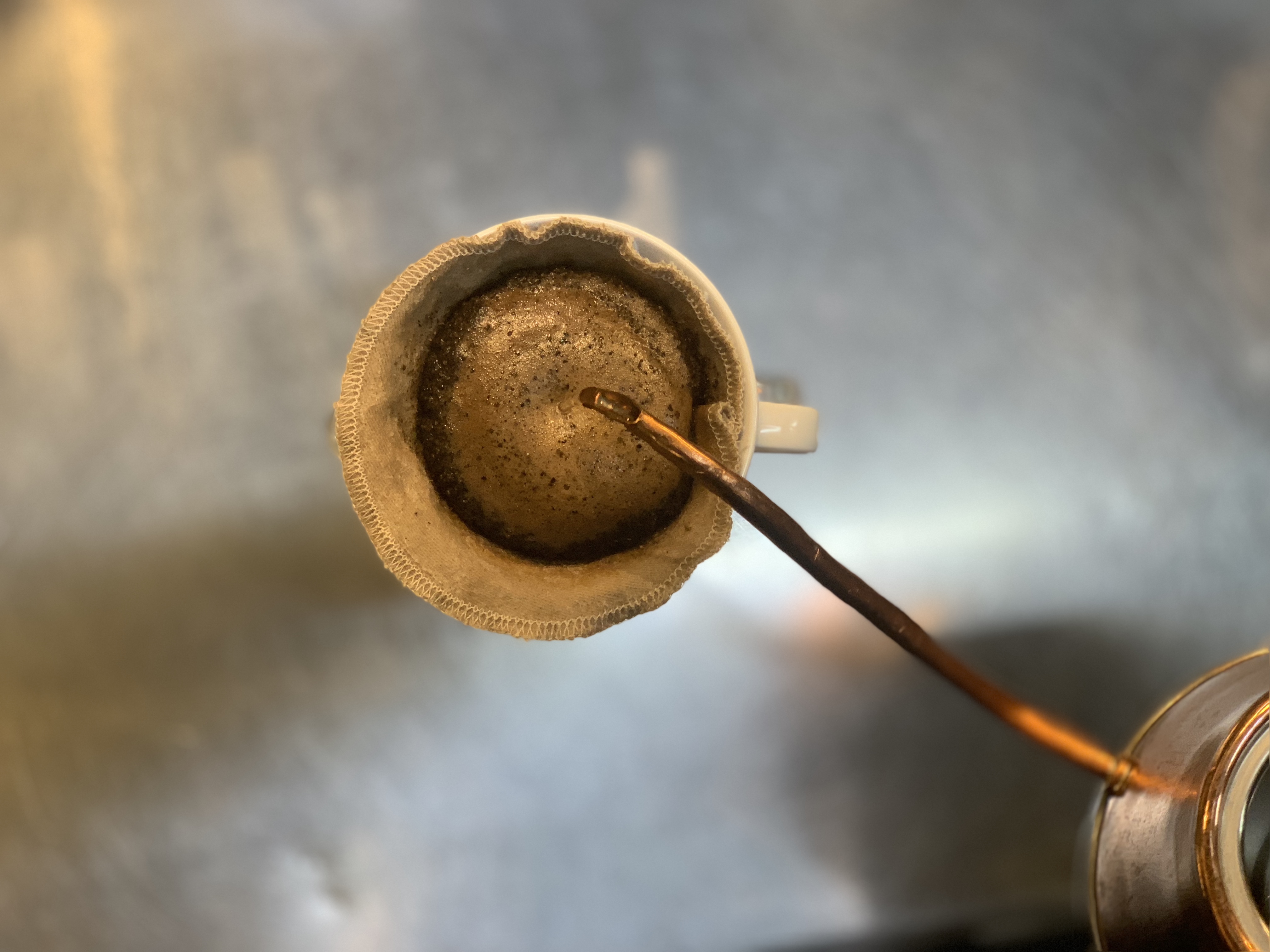 そうすることでコーヒーオイルが適度にネル(布)に染み込み、繊維がいい意味で痛むことでネル特有の味わいをより楽しむことができるそうです。