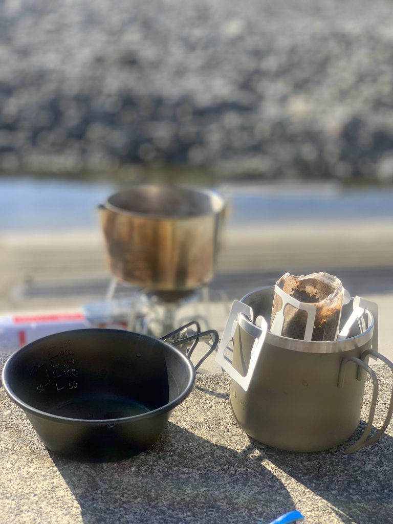 さて、この日はくまっち社長に連れてきてもらったのですが、 KUMAROMAのドリップバッグをいくつか持ってきていただいたので、飯能河原で珈琲を一杯飲むことになりました。