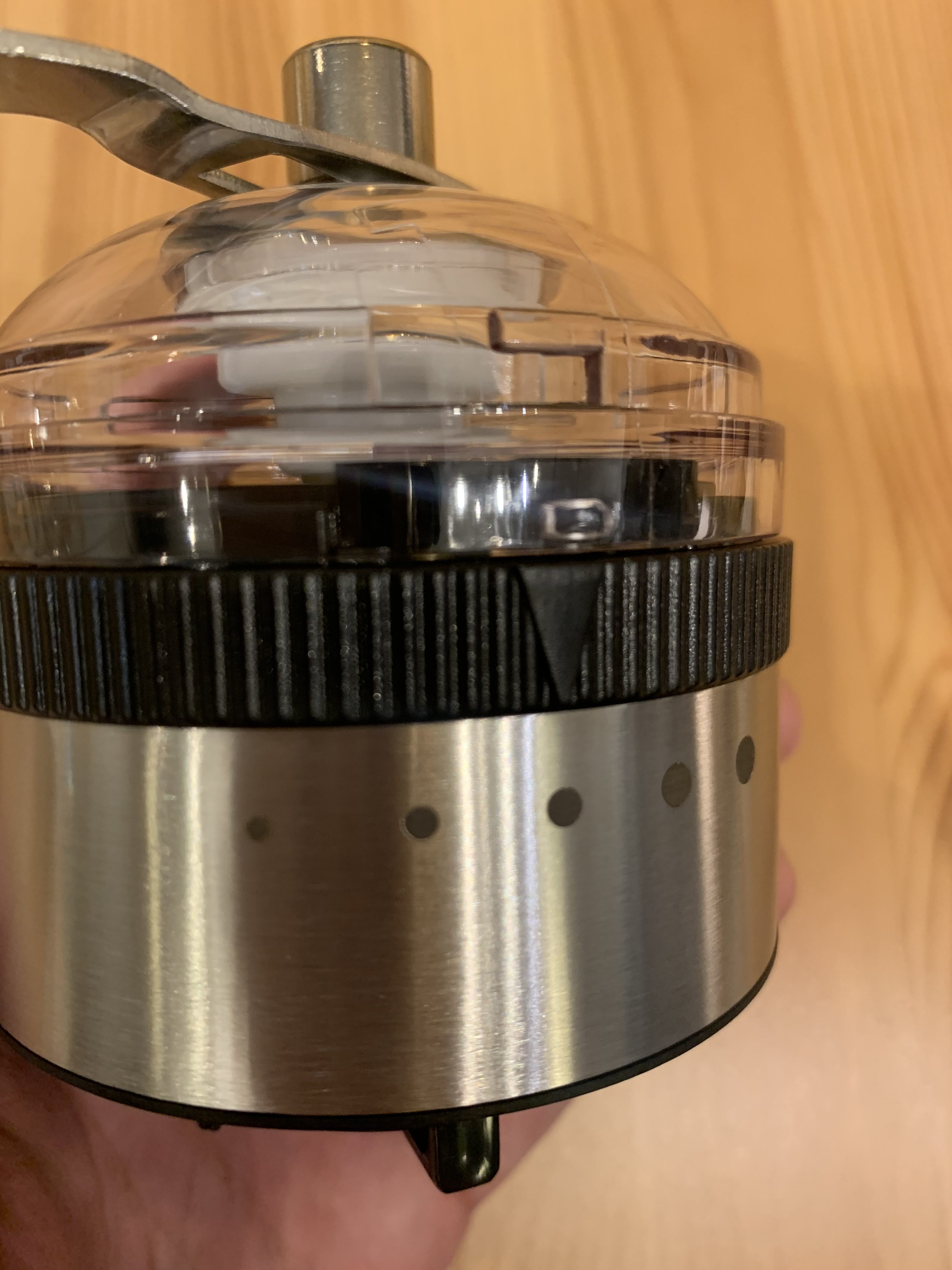 そしてここが1番ビックリしたポイントです!挽き目のダイヤルがミルの外部に付いています。
