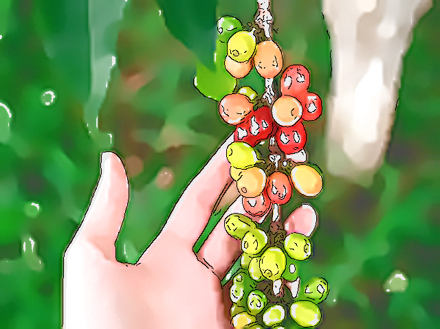 美味しいコーヒーチェリーから美味しいコーヒー豆ができあがる自然の道理。
